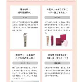 そのほか、さまざまな肌悩みに対応可能なスキンケア商品、補正下着や健康食品・サプリメントも販売しております。
