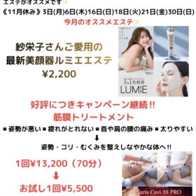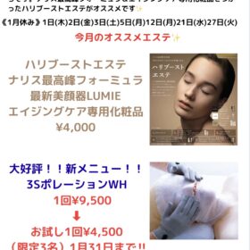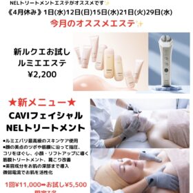 フェイシャルエステは各コース料金から500円引きで、ボディエステはお試し料金でご利用いただけます。