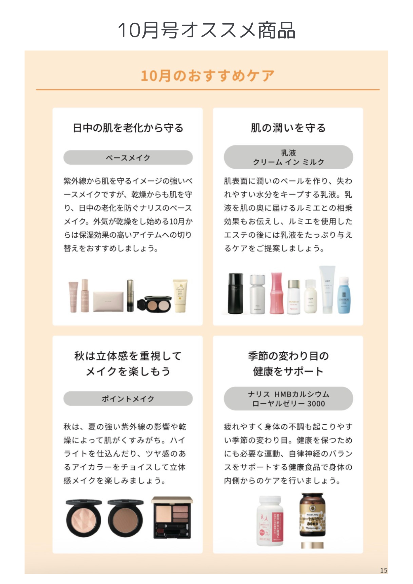 紫外線から肌を守るイメージの強いべースメイクですが、乾燥からも肌を守り、日中の老化を防ぐナリスのベースメイク。外気が乾燥をし始める10月からは保湿効果の高いアイテムへの切り替えをおすすめしましょう。